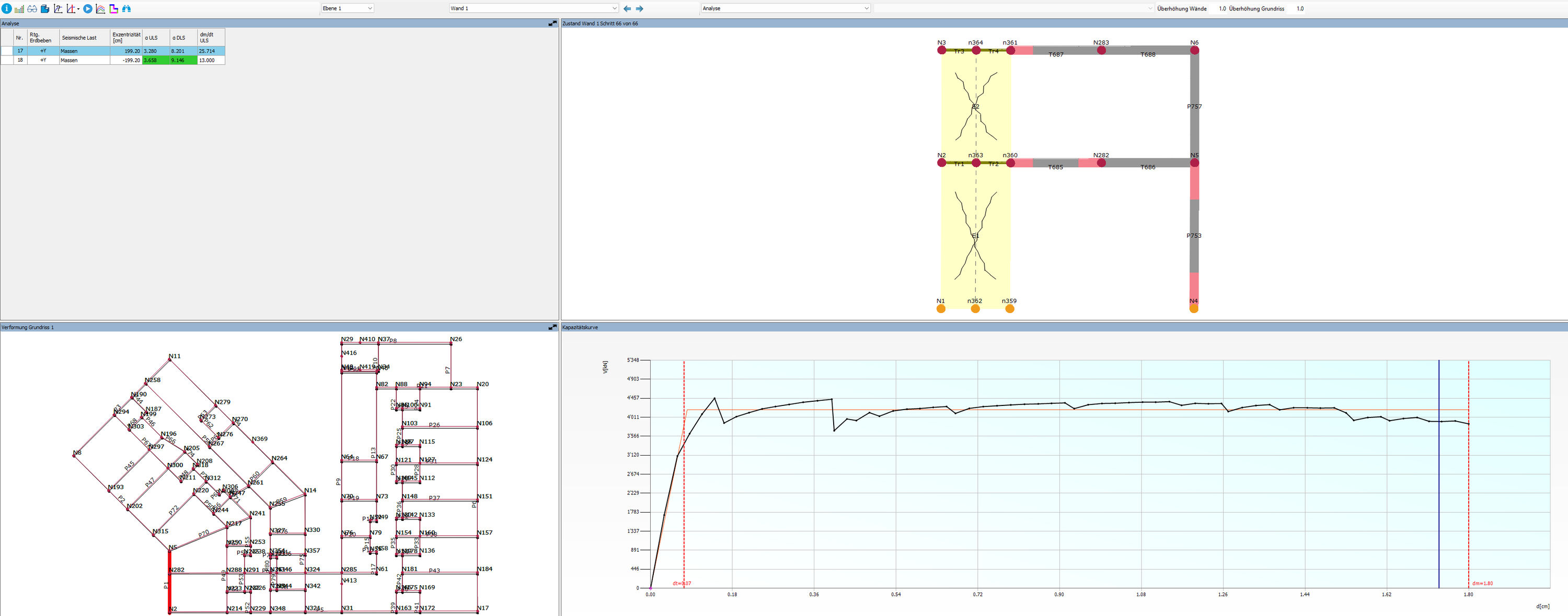 Die mehrgeschossigen Gebäudeteile aus Massivbau werden hauptsächlich durch Mauerwerkswände ausgesteift und so gegen horizontale Erdbebenkräfte gesichert. Zur Überprüfung der Erdbebensicherheit setzte Mund Ganz + Partner AG das leistungsfähige Push-Over-Verfahren ein, unterstützt durch die spezialisierte Software 3Muri. Dank der Wahl dieses optimalen Nachweisverfahrens konnten alle erforderlichen Nachweise gemäss SIA 269/8 erbracht und weitere, kostenintensive Ertüchtigungsmassnahmen vermieden werden.