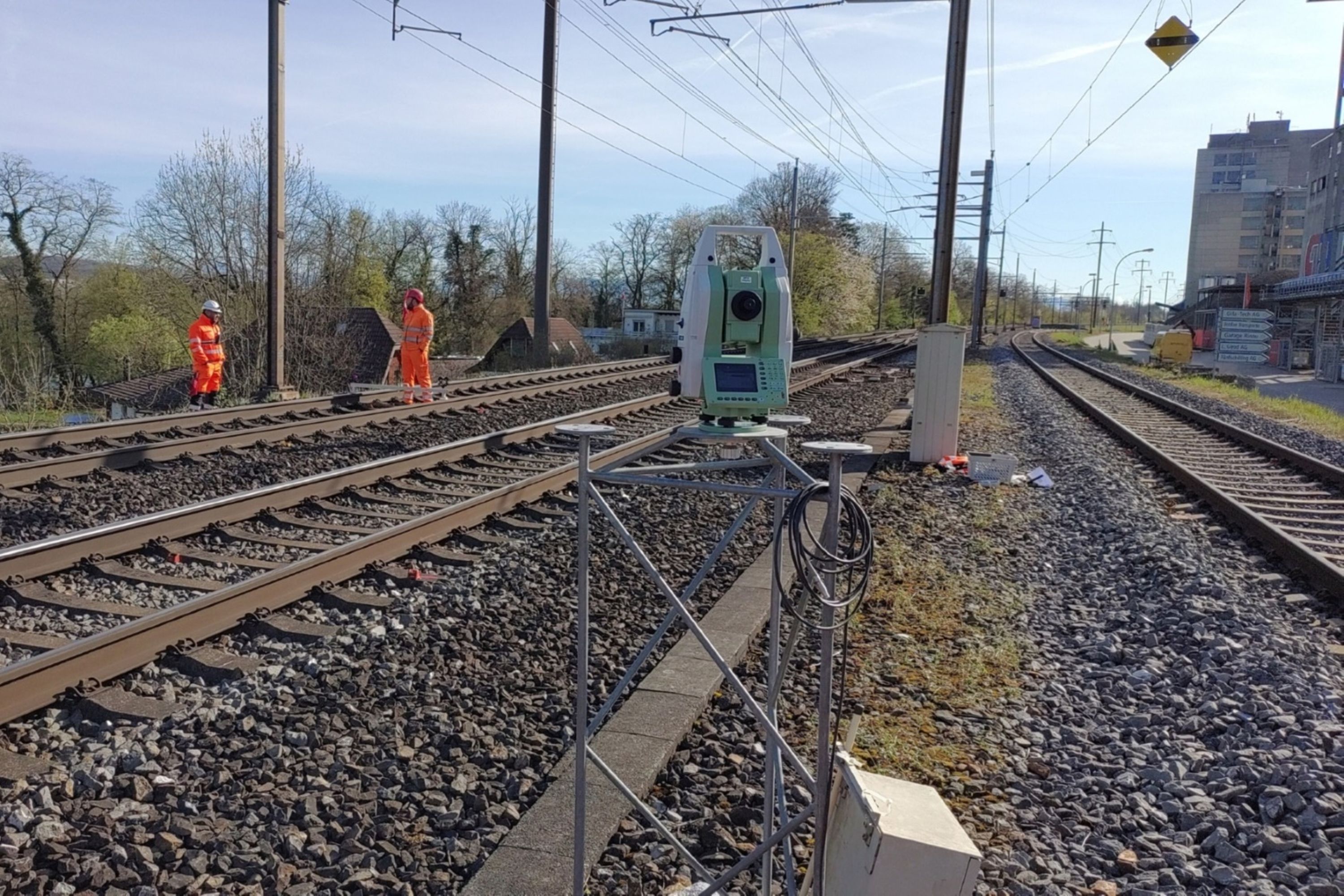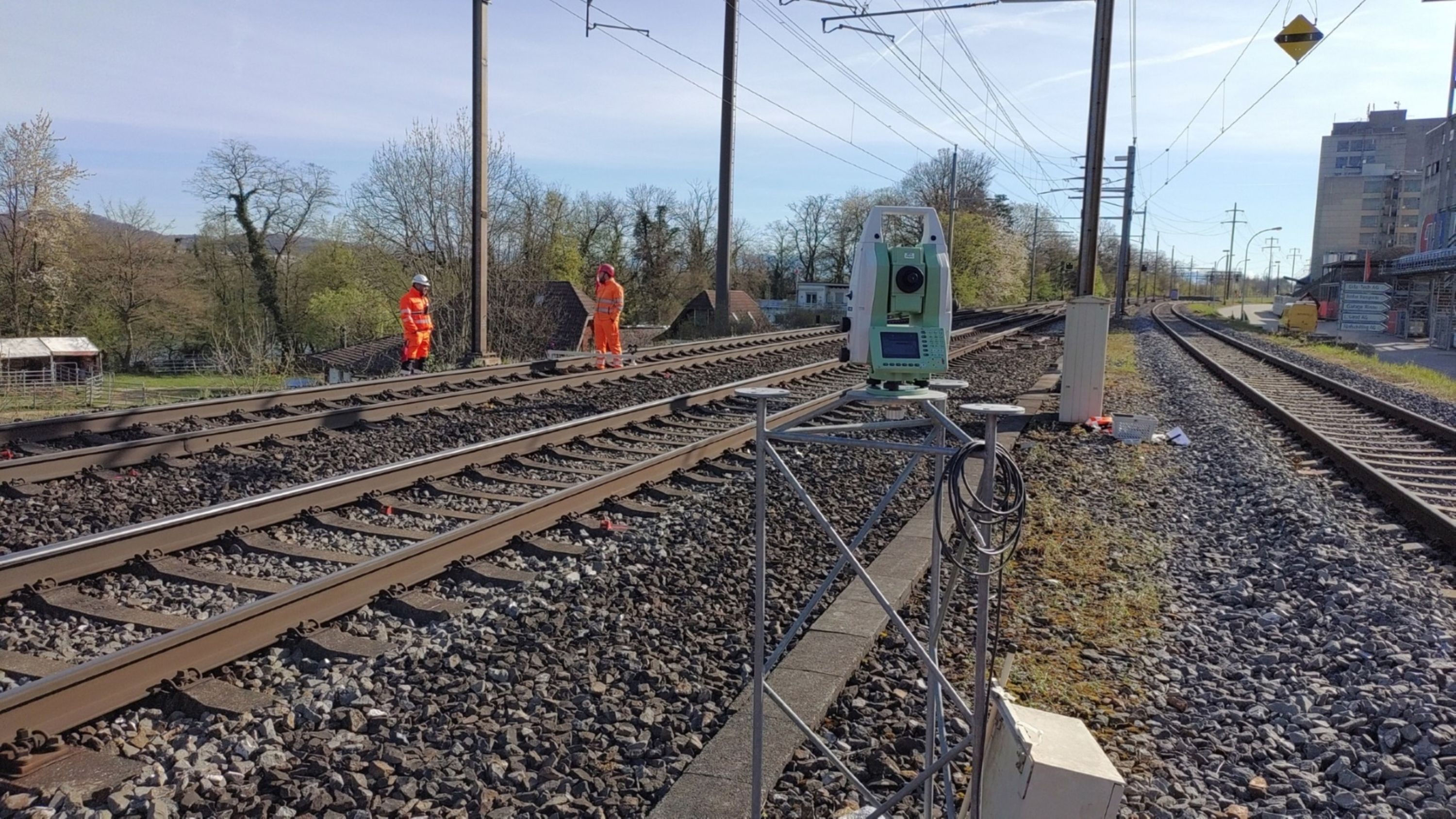 Während den Bohrtagen wurden alle 2 Stunden automatische Messung ausgeführt, die dazugehörigen Gleisprotokolle erstellt und bei Grenzwertüberschreitungen die zuständigen Stellen alarmiert. Vorgängig wurde die Bohrachse angezeigt und für den Bohrmeister die Start- und Endposition der Rohre in den Start- und Zielgruben in Höhe und Lage abgesteckt. Direkt vor Bohrbeginn wurde die korrekte Ausrichtung der Rammbohrmaschine kontrolliert.