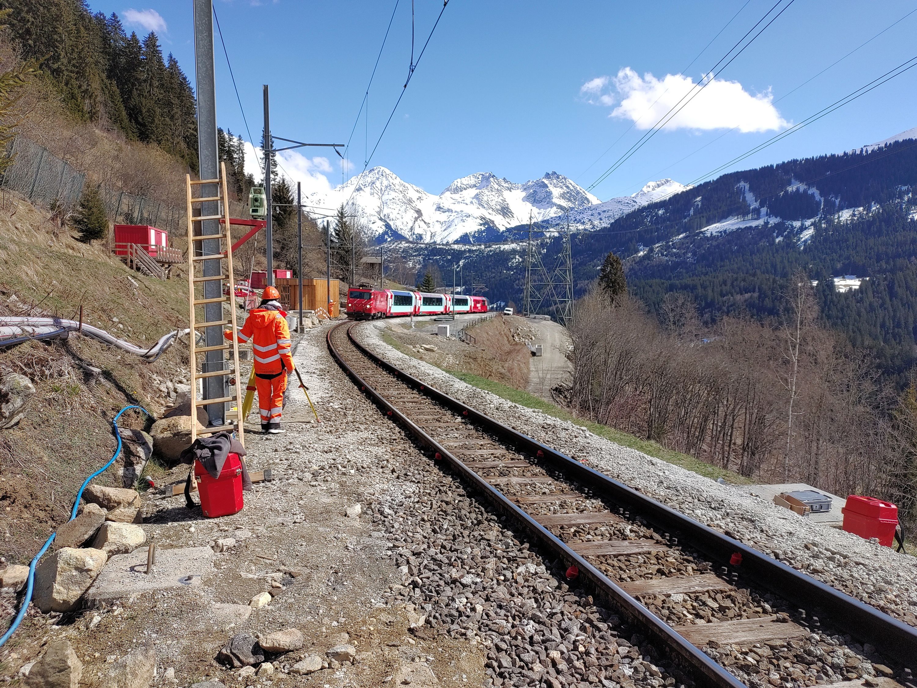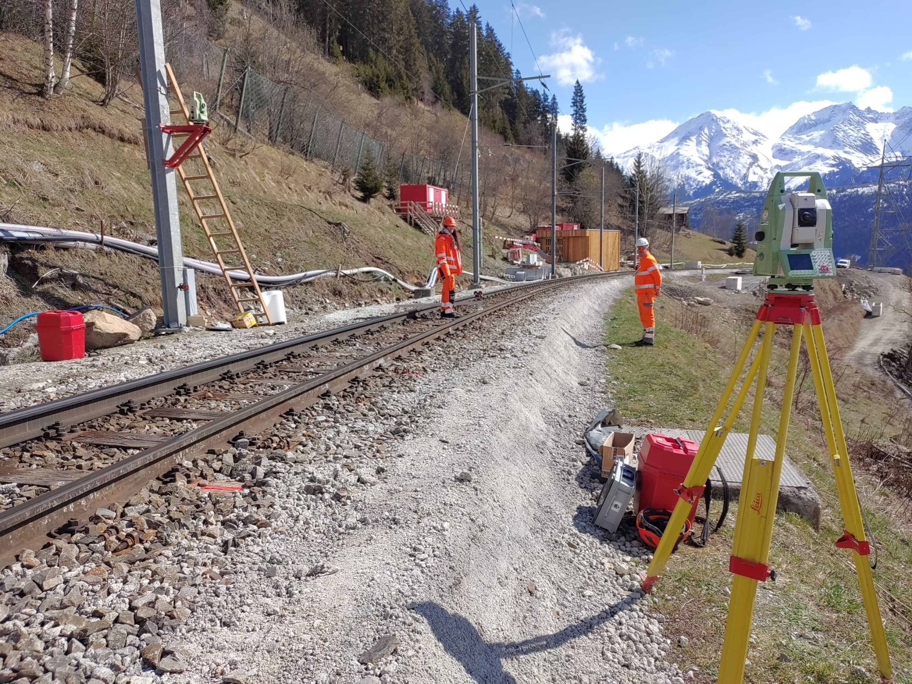 Dafür wurden von der Straub Vermessungen AG zwei Totalstationen an den Fahrleistungsmasten installiert und mit insgesamt 140 Messpunkten an den Gleisen die Gleisgeometrie automatisch überwacht.