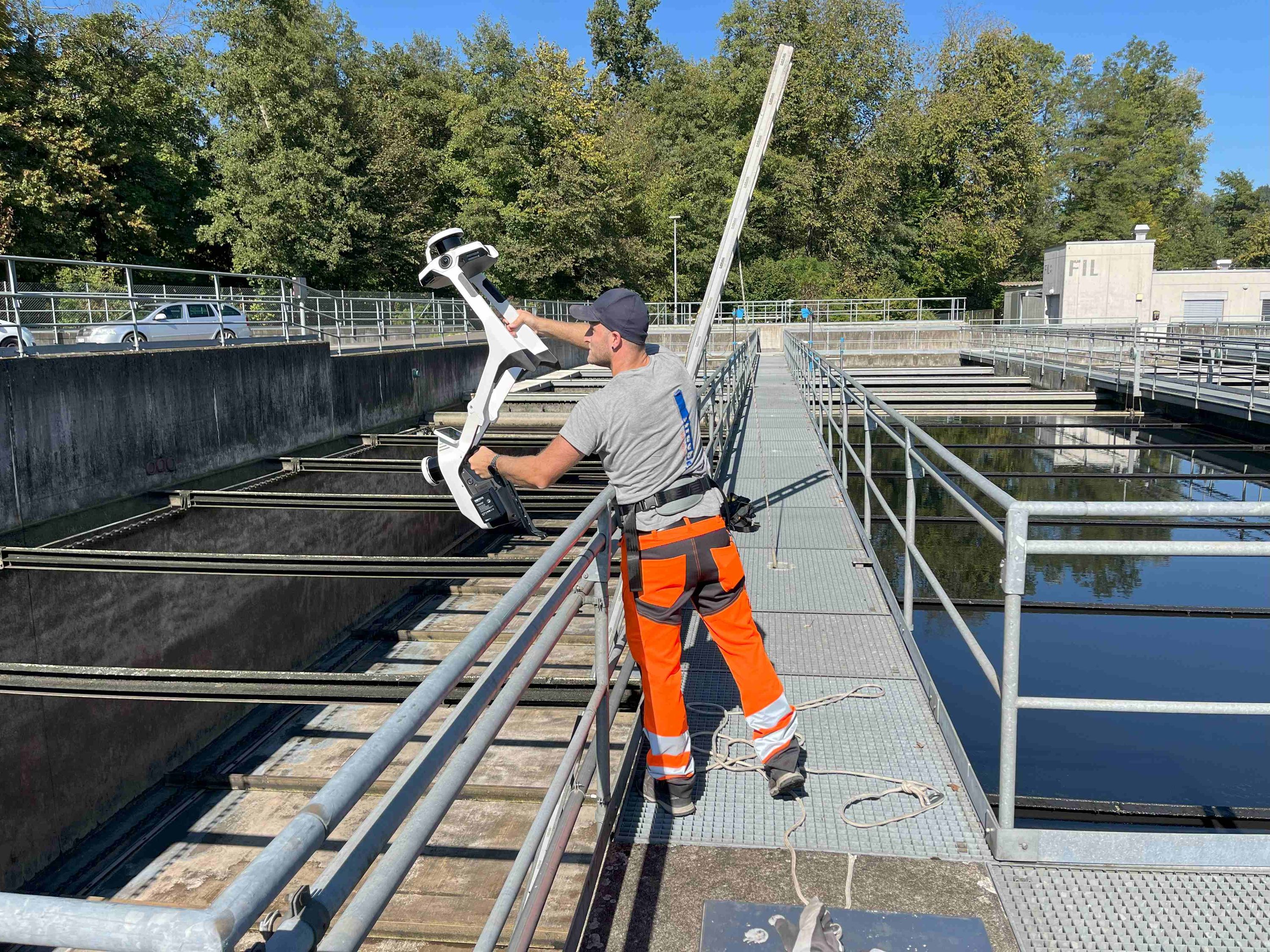 Der Gewässerschutzverband der Region Zug plant bei der ARA Schönau den Neubau des Nachklärbeckens. Für eine Bestandsaufnahme soll das Gelände von ca. 4'600 m2 aufgenommen und gescannt werden. Das Projekt wurde anhand von 3D-Bestandsaufnahmen und mittels Scan2BIM ausgeführt.