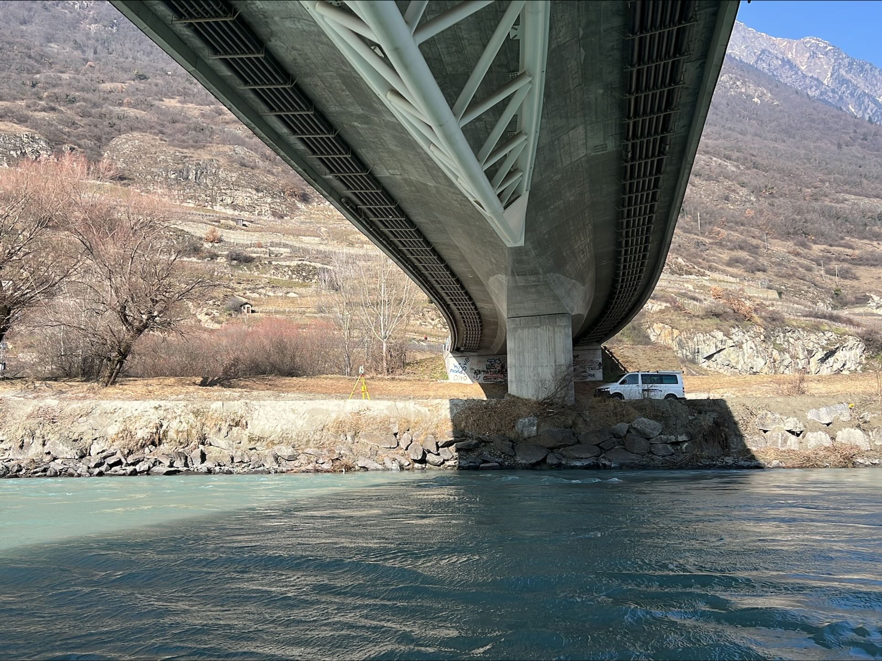 Das Projekt umfasste die Aufnahme und Auswertung von 231 Querprofilen, davon 28 Brückenprofile zwischen der Barrage de Lavey und Sierre im Kanton Wallis. Die Uferaufnahmen wurden mittels GNSS- und tachymetrischen Messungen aufgenommen. Für die Aufnahme der Flusssohle wurde auf den Profilen ein Singe Beam Echolot eingesetzt. Die Ergebnisse zeigten bei mehreren Querprofilen Veränderungen der Flussohle sowie den Ufern auf, welche auf das Hochwasserereignis im Juni 2024 zurückzuführen waren.
