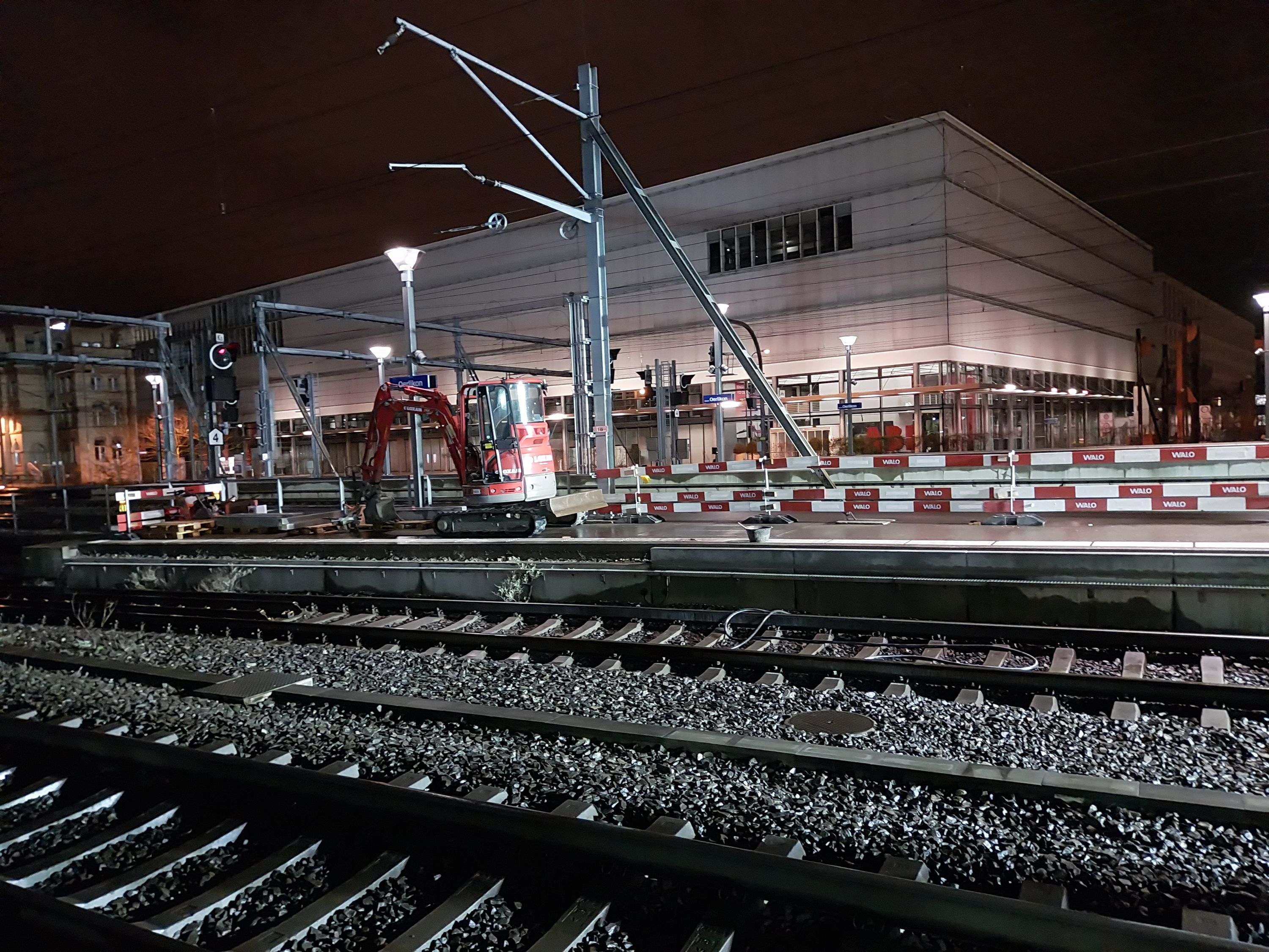 Beim Projekt "Schadenfall Franklinturm" am Bahnhof Oerlikon wurden ca. 90m des Perrons entlang des Gleis 2 saniert.